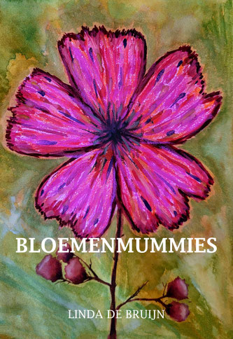 De cover is een origineel kunstwerk van de auteur dat de poëzie en kwetsbaarheid van Bloemenmummies vangt.