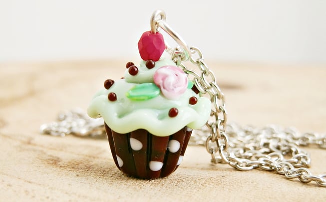 Bij dit high tea verhaal maakte ik een kleine serie high tea sieraden waarvan onderstaande ketting met handgemaakte miniatuur cupcake van lampwork glas uit Rusland er eentje. Ook de ketting met miniatuur theepotje en bijpassende theekopje en schotel oorbellen horen erbij. Je vindt deze leuke cupcake ketting, net als de andere high tea sieraden in de webshop.
